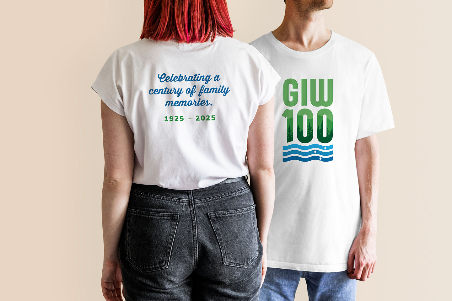 Logo and collateral for a family reunion located in Gilmanton Iron Works (GIW), NH. The event celebrates the centennial of the family lake house.